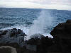 This picture is of a blowhole formed by a lave tube. As waves break against the rocks the tube fills with water and shoots out the top with an effect similar to a gyser.